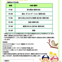 【変更有】再春館一本の木キッズクラブのクラブ員へご連絡 4月18日(日)開催の春の立田山生きもの観察会は最近の熊本県の新型コロナウィルスの感染者が増加傾向にあるため、お弁当の中止と午後の観察会を中止し、午前のみの観察会へ変更いたしました。開催時間の変更により、保護者の皆さまには送迎等ご迷惑をおかけいたします。※新 ... 2021年04月16日 | キッズクラブ , 環境教育