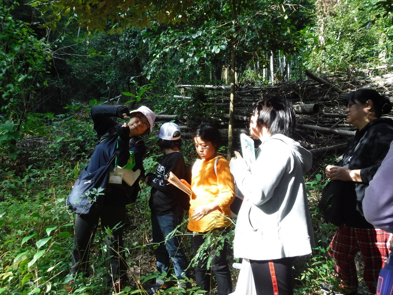 秋の小山山で動植物の観察をしました。植物が生き延びるためにとげをつけたり、虫たちが子孫を残すために産卵の工夫をしていることなどを熱心に学びました。カブトムシの幼虫を見つけた子供たちもいて大変盛況な観察会となりました。