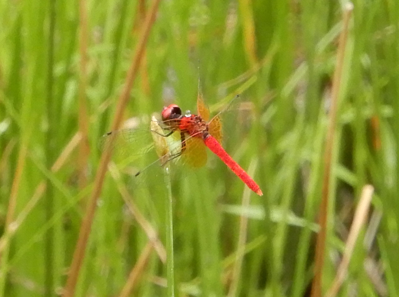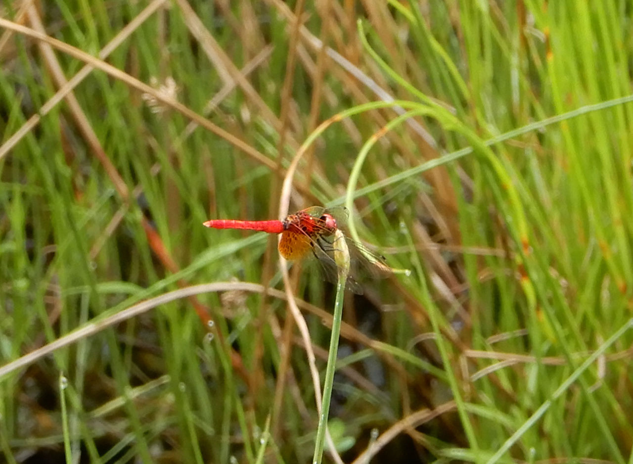 熊本県の県北を除く全域で確認されていましたが、湿地の減少、休耕田の陸地化で生息地が急激に減少しています。天草地域の1カ所に安定した生息地があります。大きさ17~21㎜、日本一小さなトンボ。