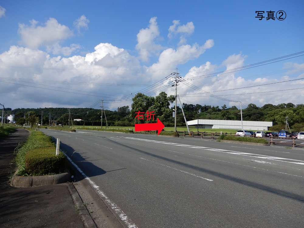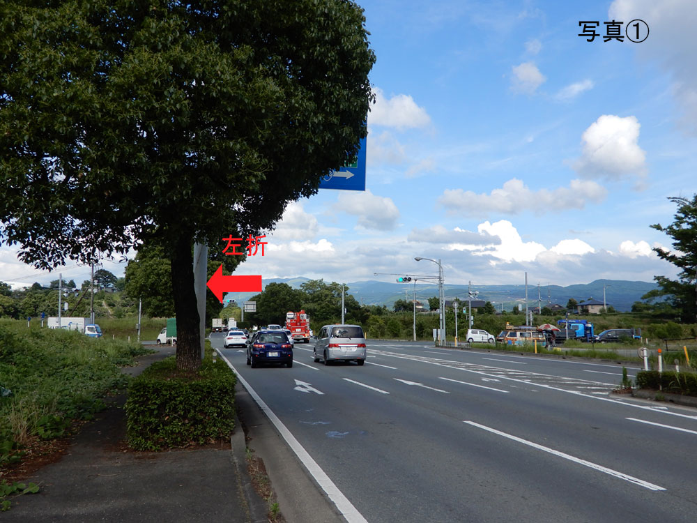 ②平田交差点を左折します。(写真①参照)