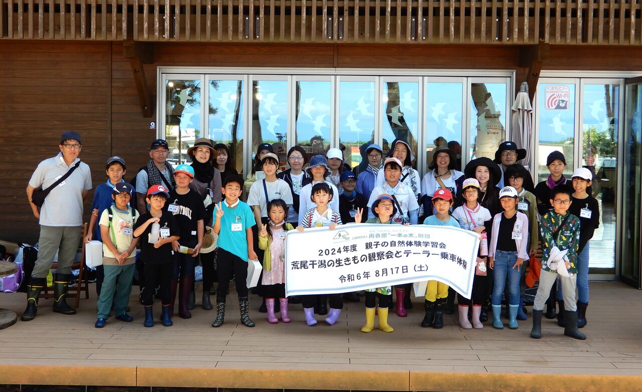 お天気に恵まれた2024年8月17日(土)、公募で当選した33名の参加者は再春館製薬所から貸し切りバスで、一路荒尾干潟水鳥・湿地センターへ。