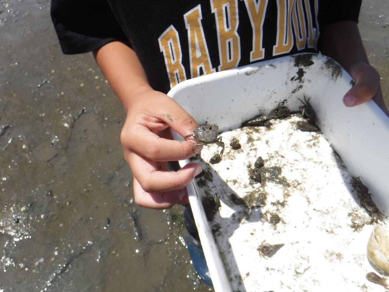 カニのオスとメスの見分け方や、ヤドカリには右手が大きいのと左手が大きいのがいて、名前が違うことや生息場所が違うことなどを教えていただきました。