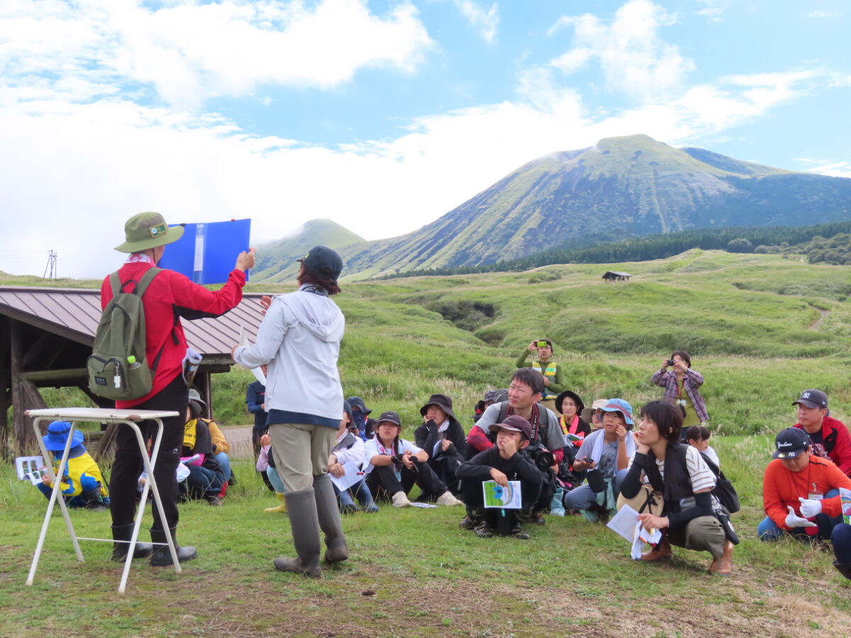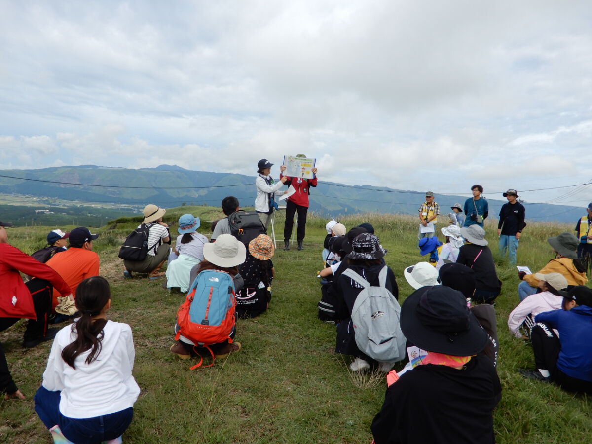 環境省阿蘇くじゅう国立公園管理事務所の方からは阿蘇の成り立ちや草原の重要性を、熊本市動植物園の方からはゾウ達が来園した当時から40年以上も阿蘇の野草をゾウに食べさせていて草原の維持に貢献していることなどのお話を聞きました。
