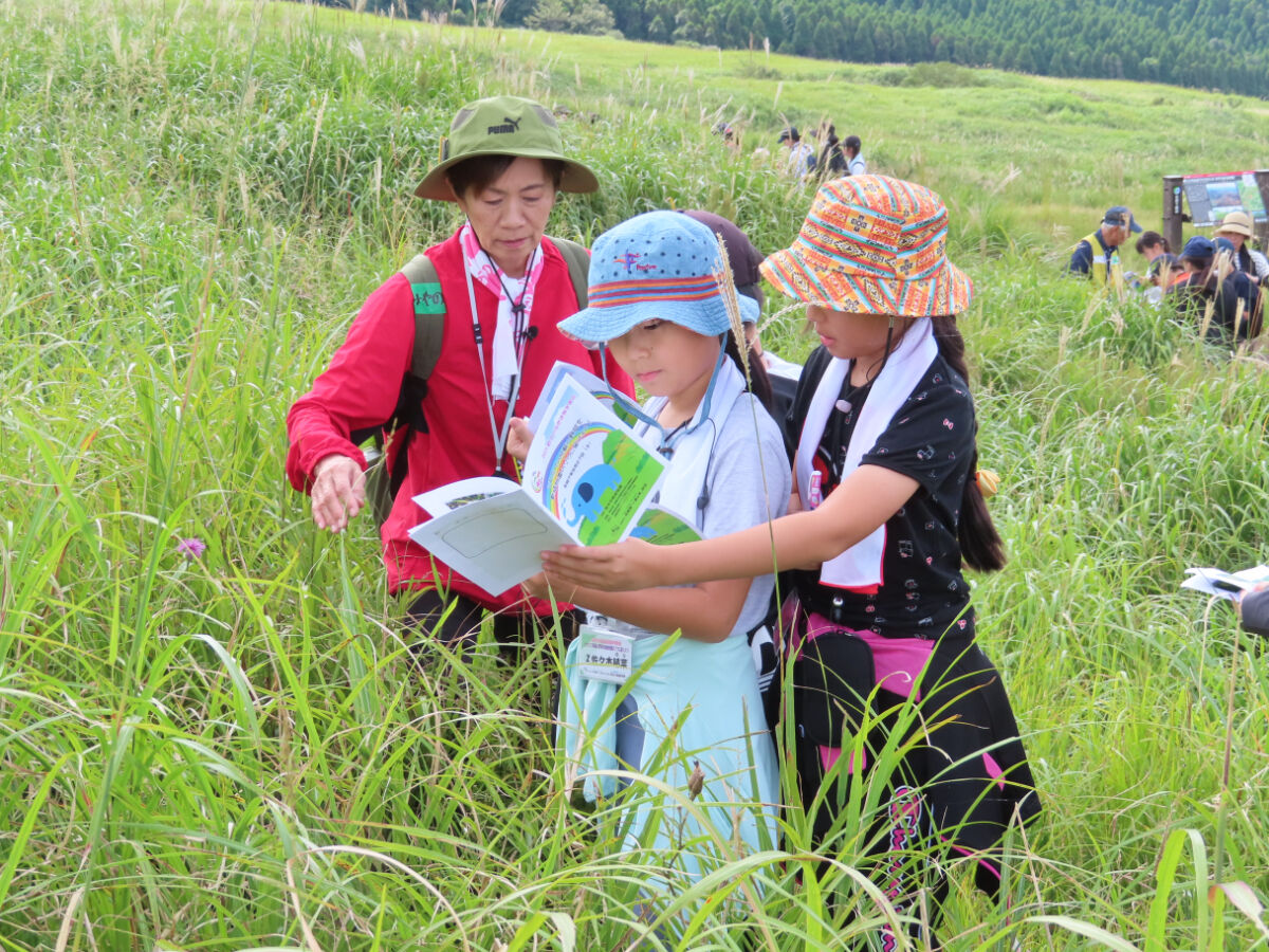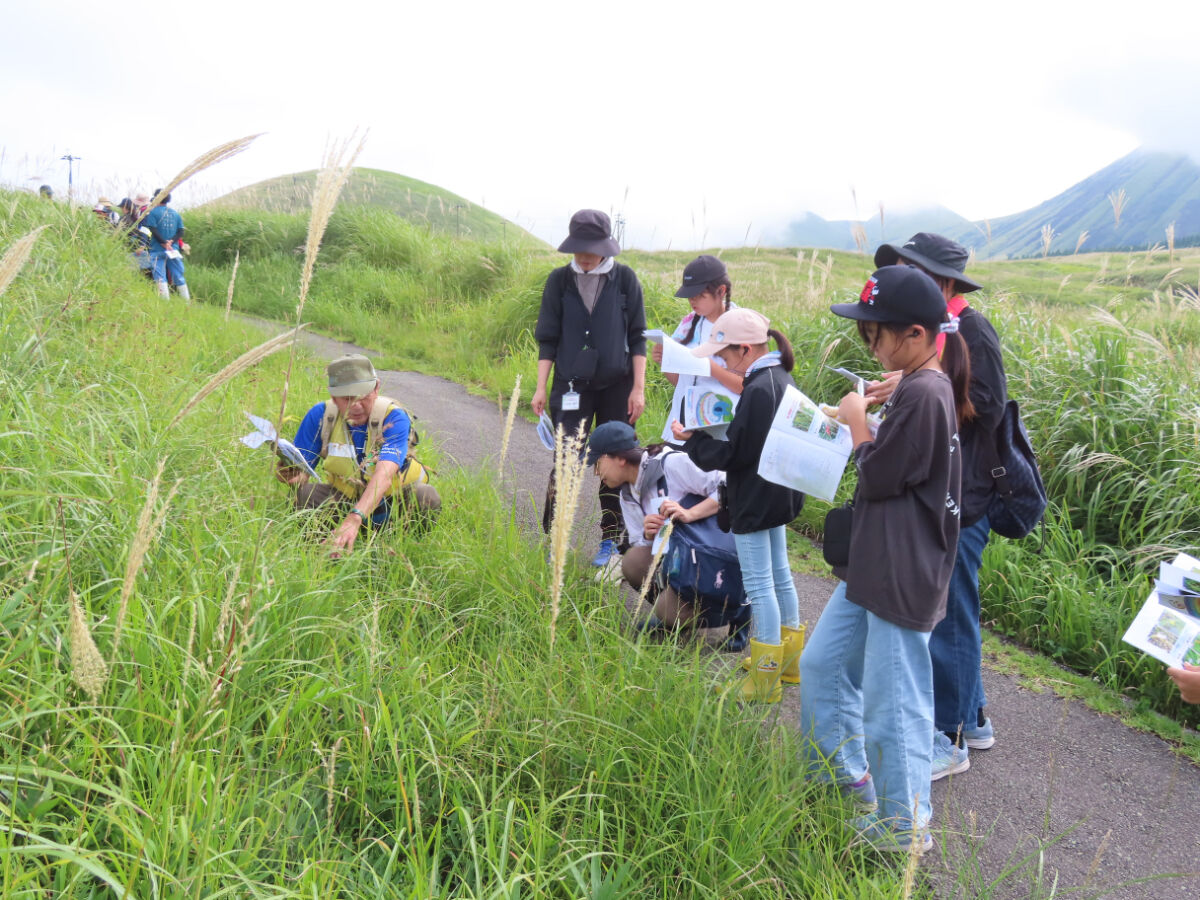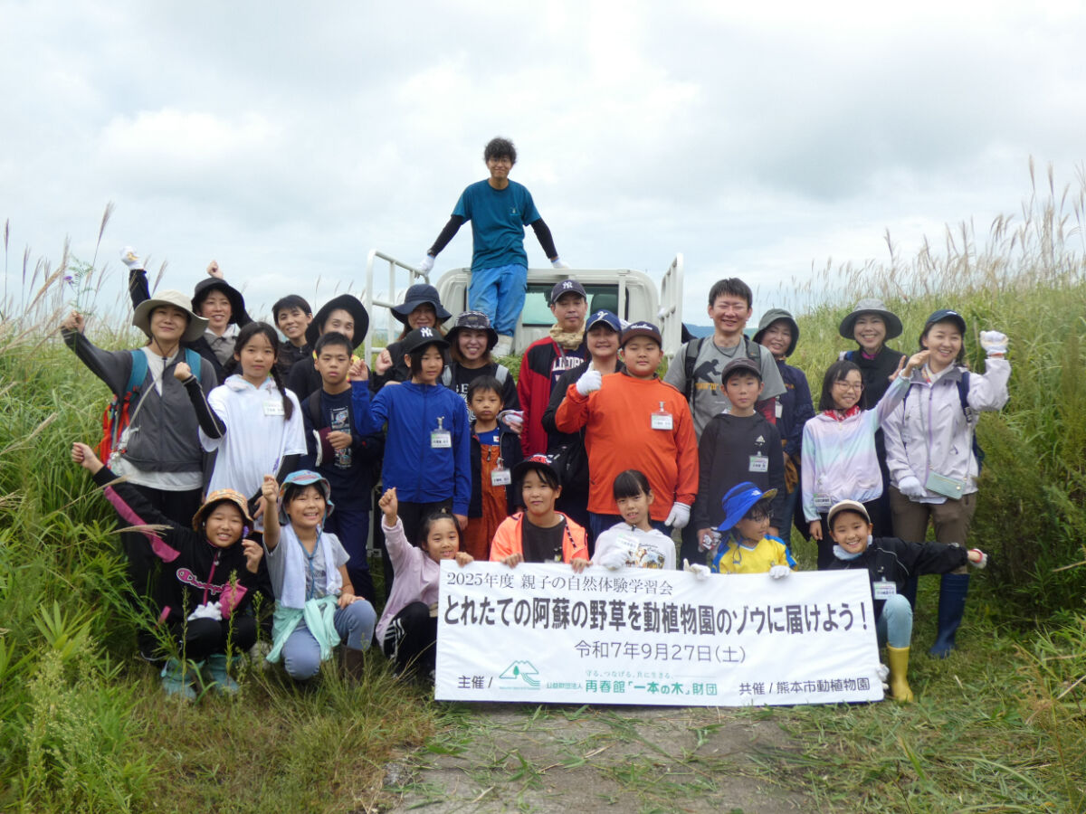 2025年9月27日(土)、前夜の雨の影響が少し残る中、阿蘇市・米塚下園地にて、公募で選ばれた親子30名の皆さんと「親子の自然体験学習会~とれたての阿蘇の野草を動植物園のゾウに届けよう!」を開催しました。