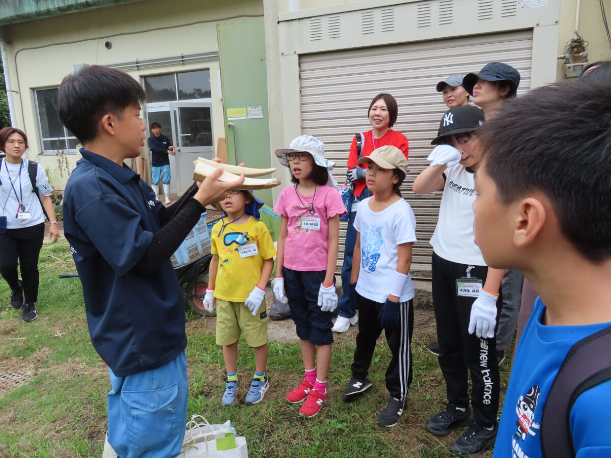 ゾウの牙や歯、フンなどを見せてもらいました。実際に触ることもできました。