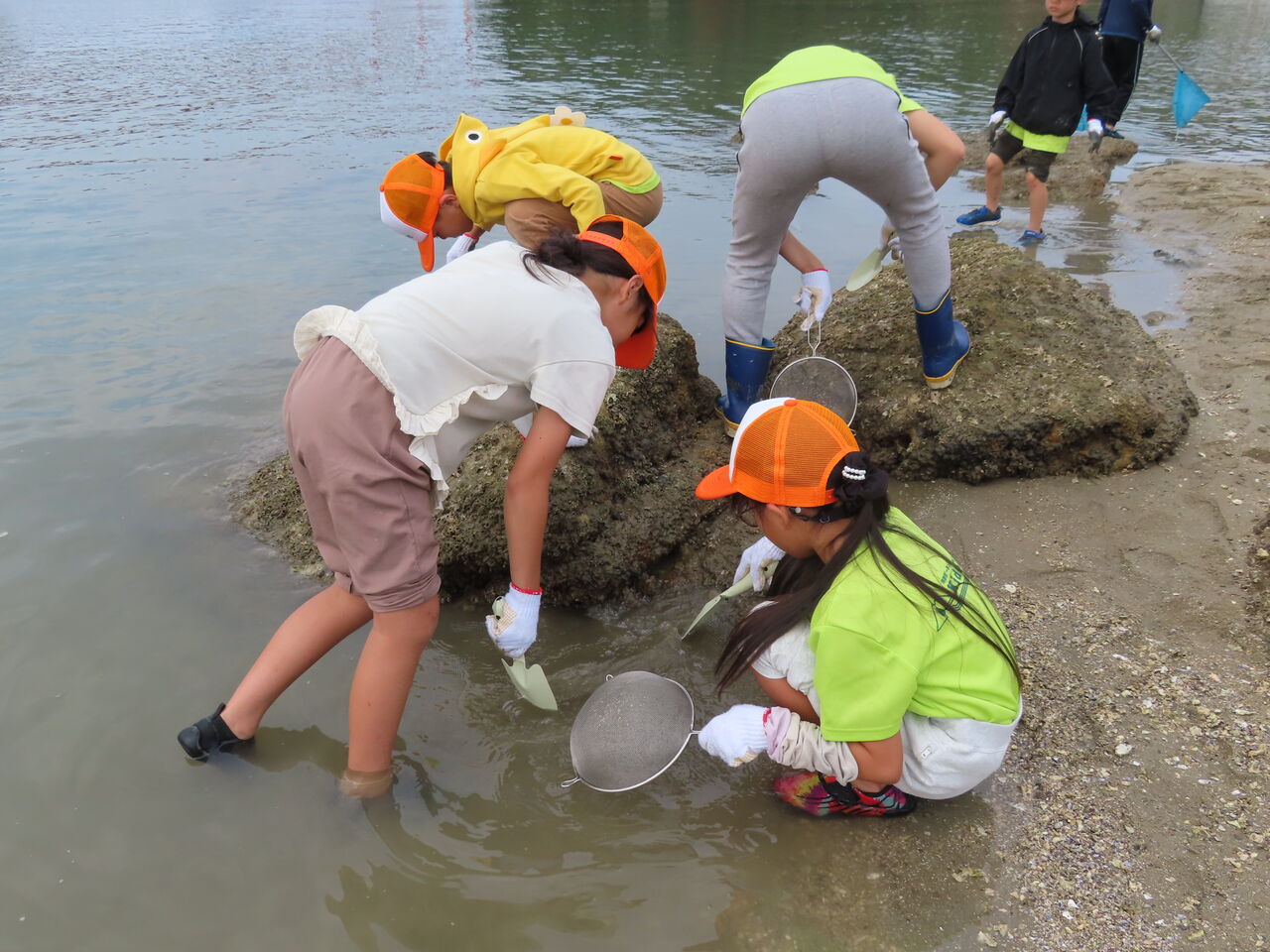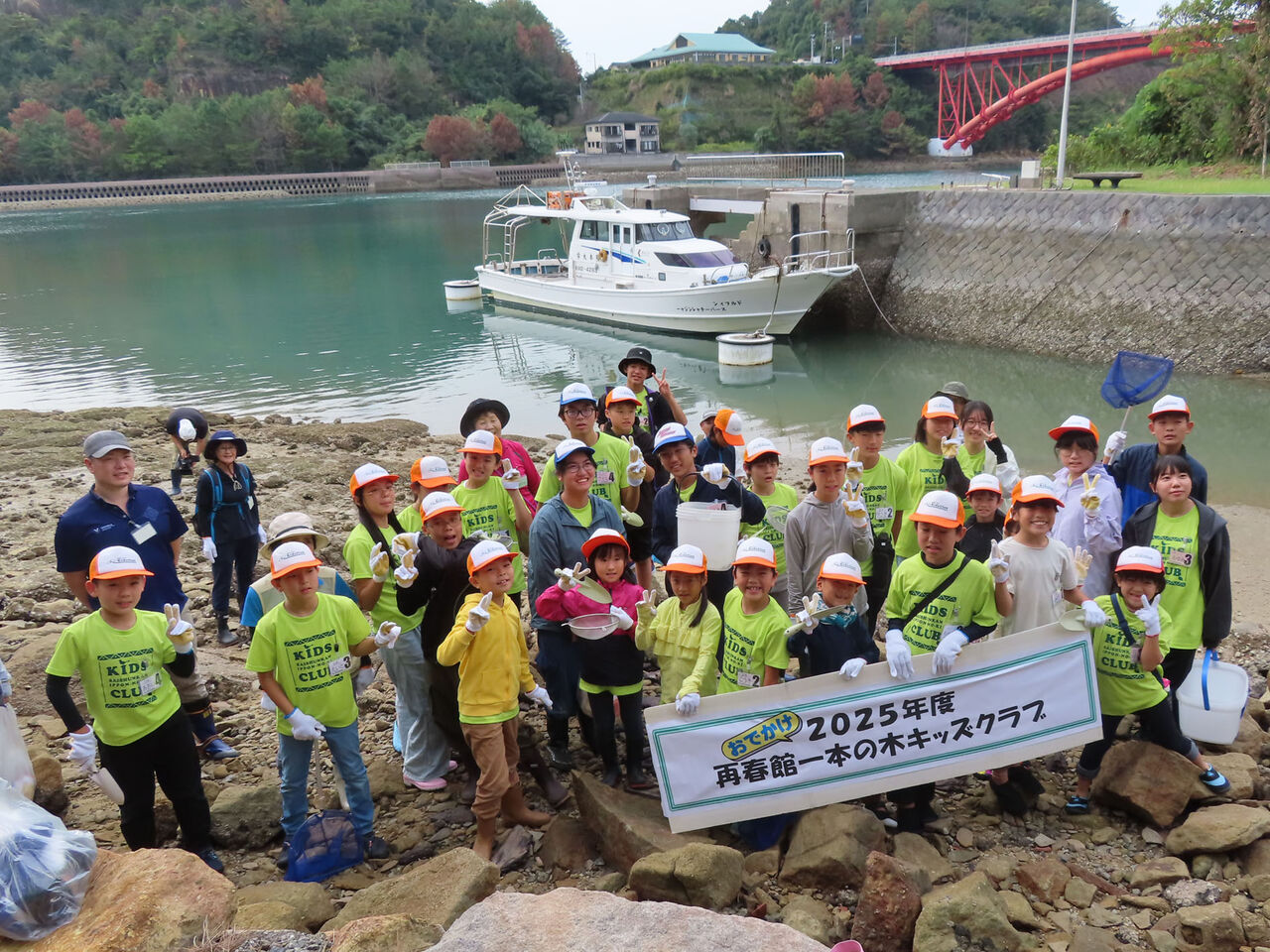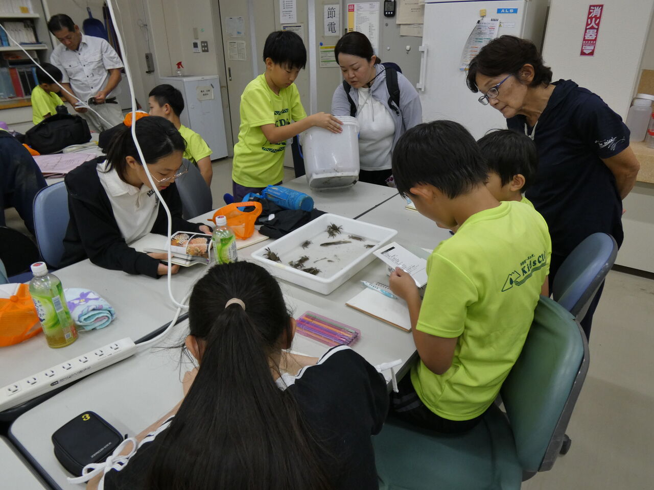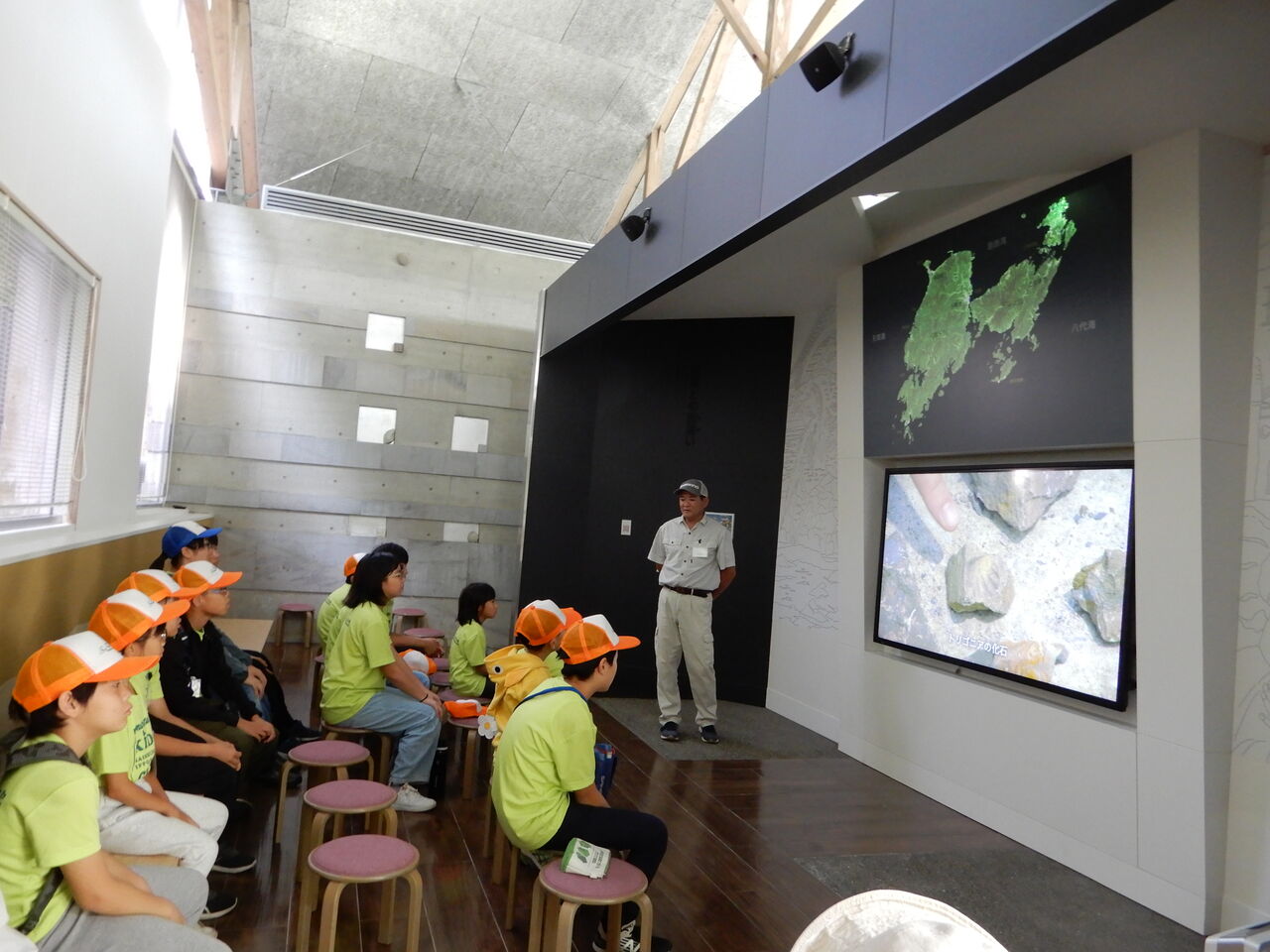 キッズクラブメンバー25名、キッズボランティア6名は天草自然公園ボランティア協会の協力を得て、四つの班に分かれ午前中「天草ビジターセンター」を見学。天草の自然に関するビデオを観て、館内の展示物を見学したり、どんぐりのコマまわしに興じたりしました。