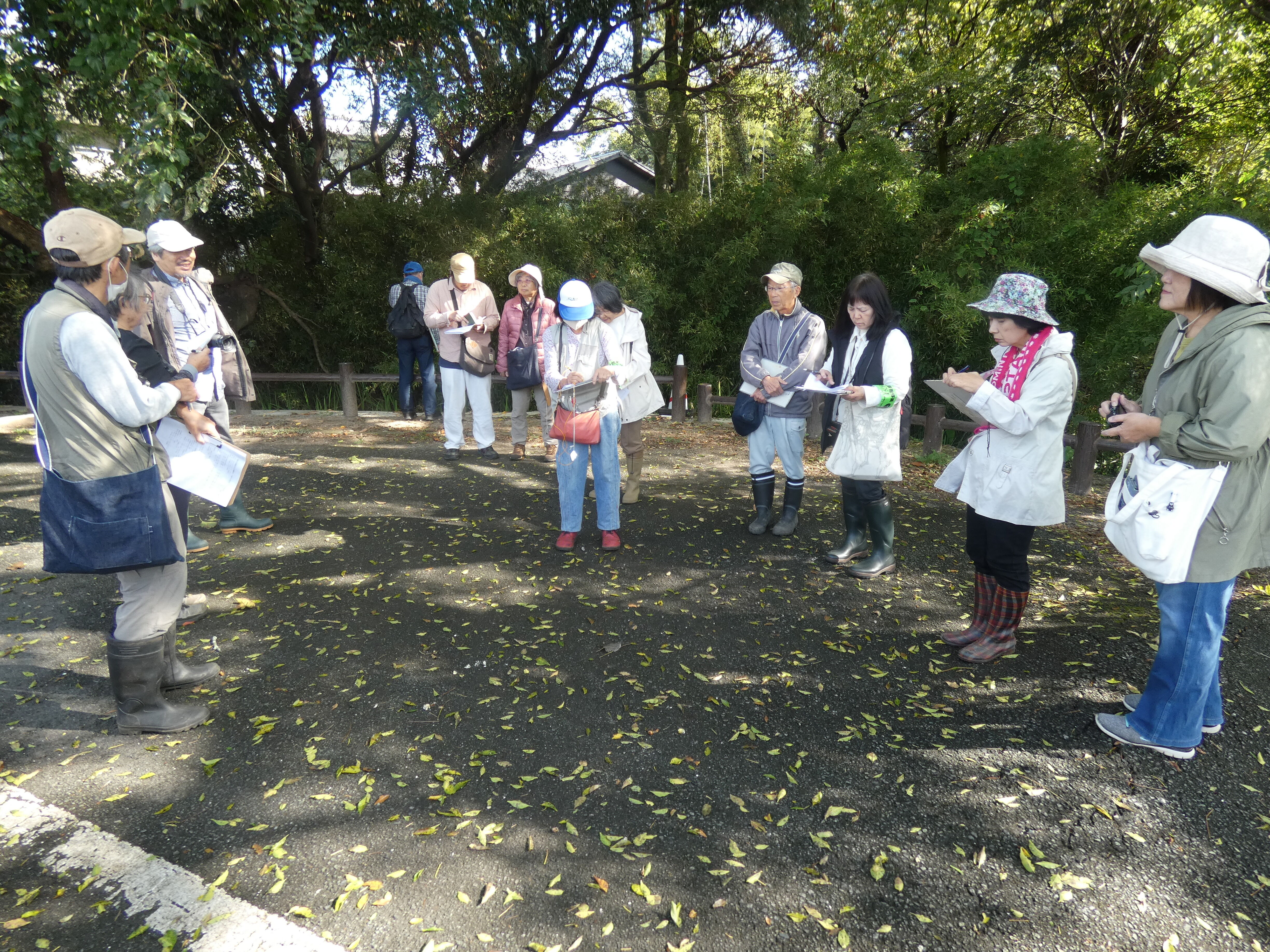 11月1日(土)、自然観察熊本の指導員さん11名とともに、今度の日曜の「秋の江津湖生きもの観察会」の下見を行いました。下見ではキッズクラブのみんなに見てほしいこと、気づいてほしいところなどを確認しました。