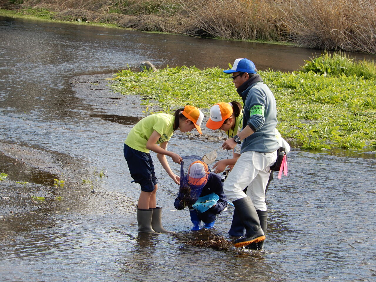 冬の江津湖は落ち葉や枯草で色彩には乏しいものの、湧水のため水温は年間を通して18℃前後と一定しており、この日も水中活動を行いました。